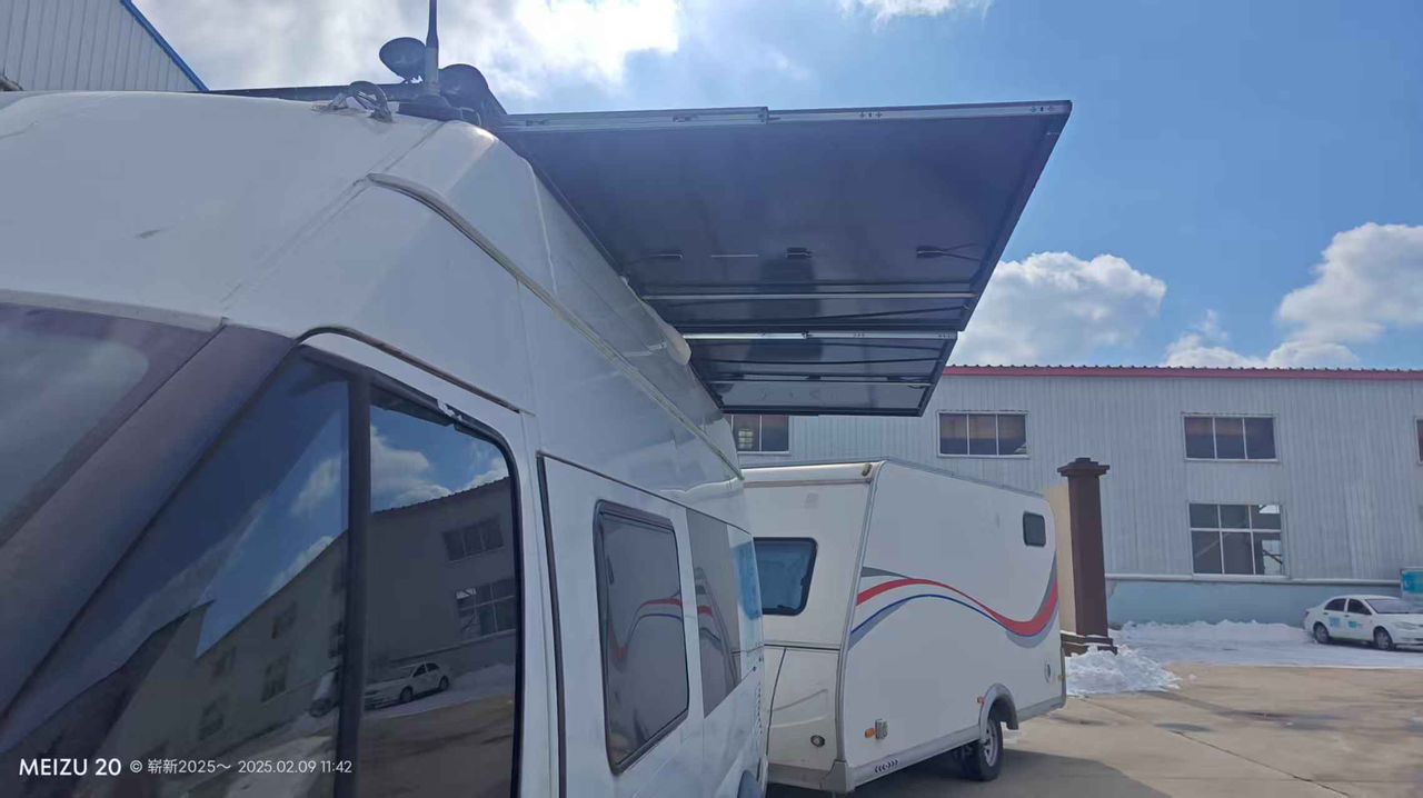 הקיט כולל : מסילות נשלפות,פנלים סולאריים (450W כמות 4), מנועים 12V,מפסק DC וקונסטרקציה אלומיניום לגג.